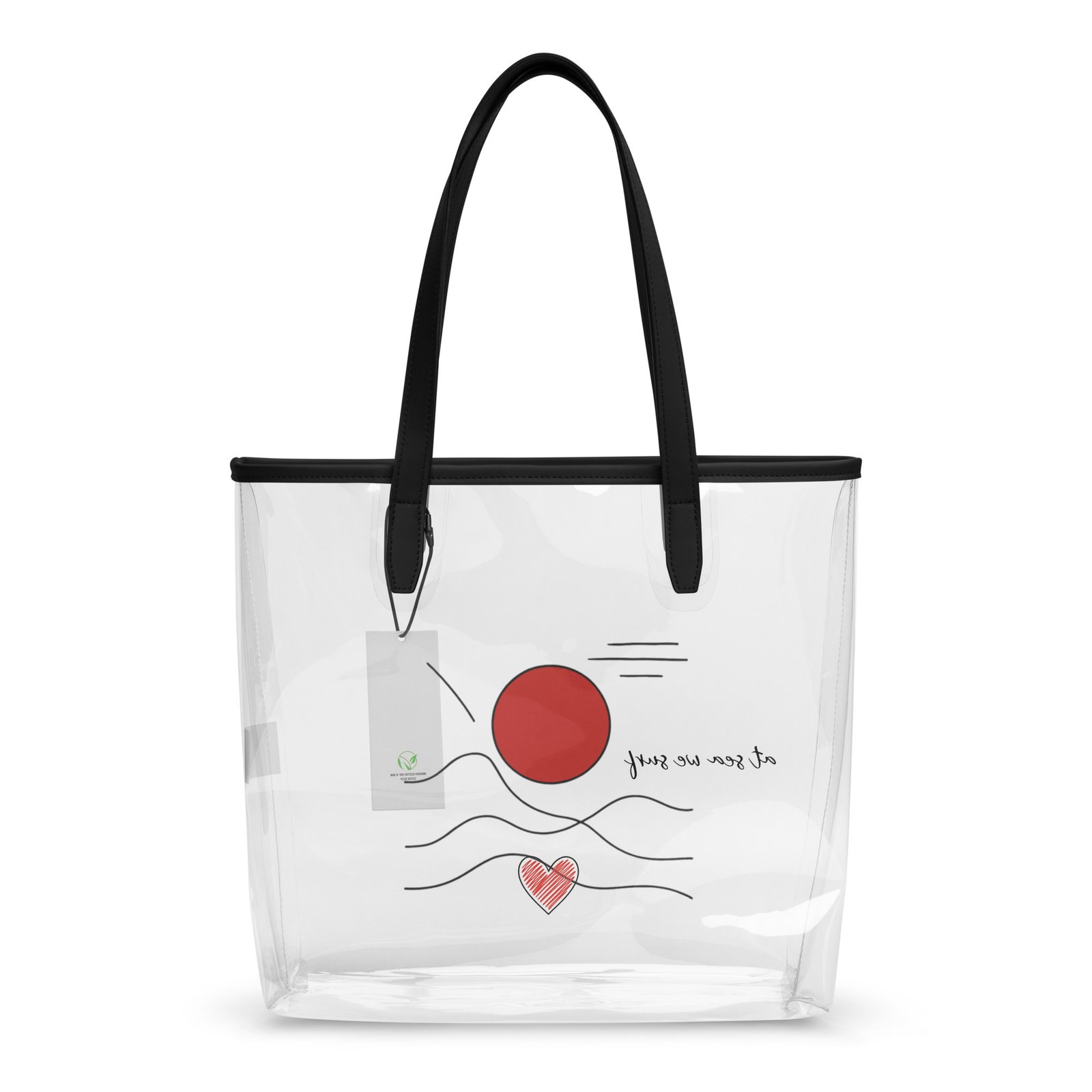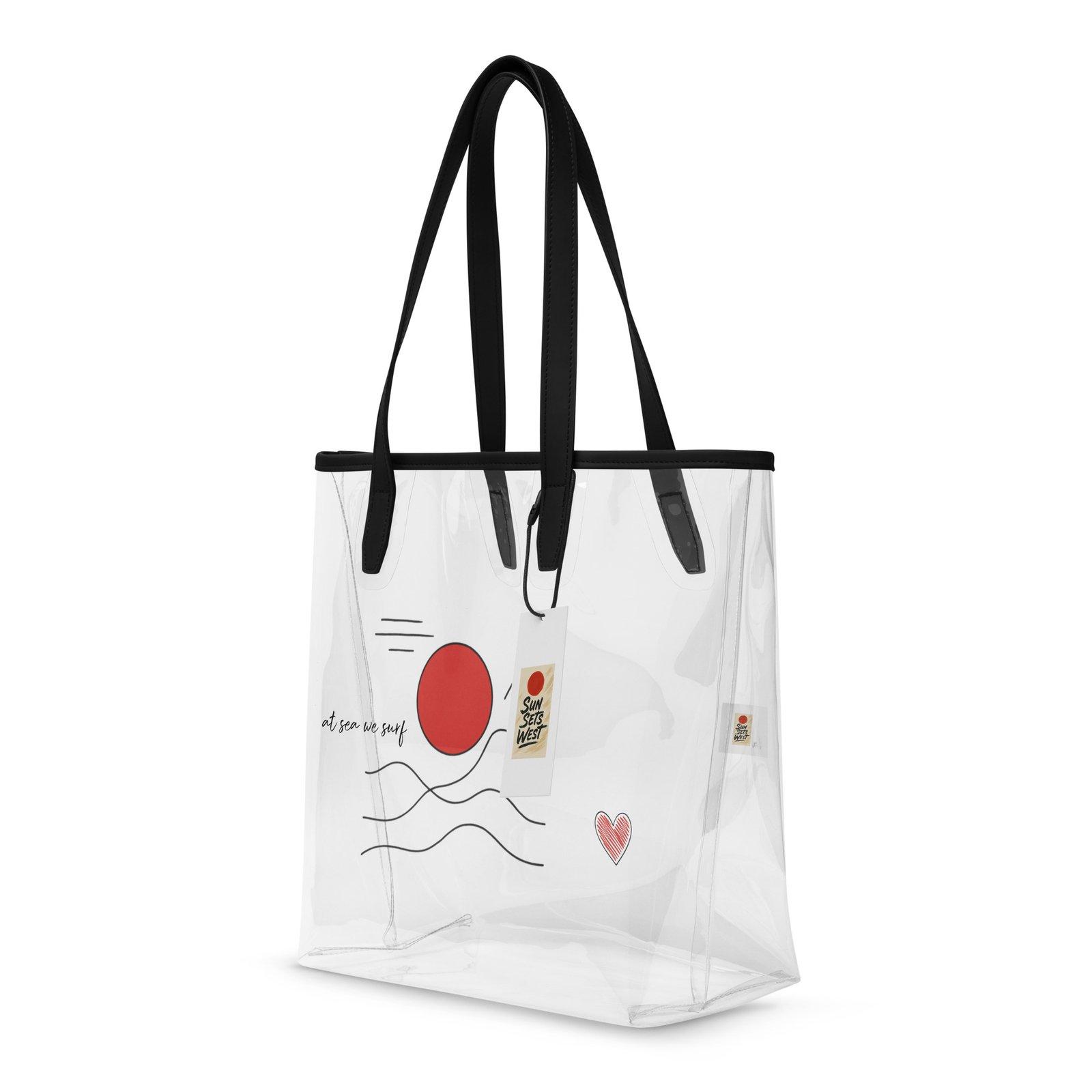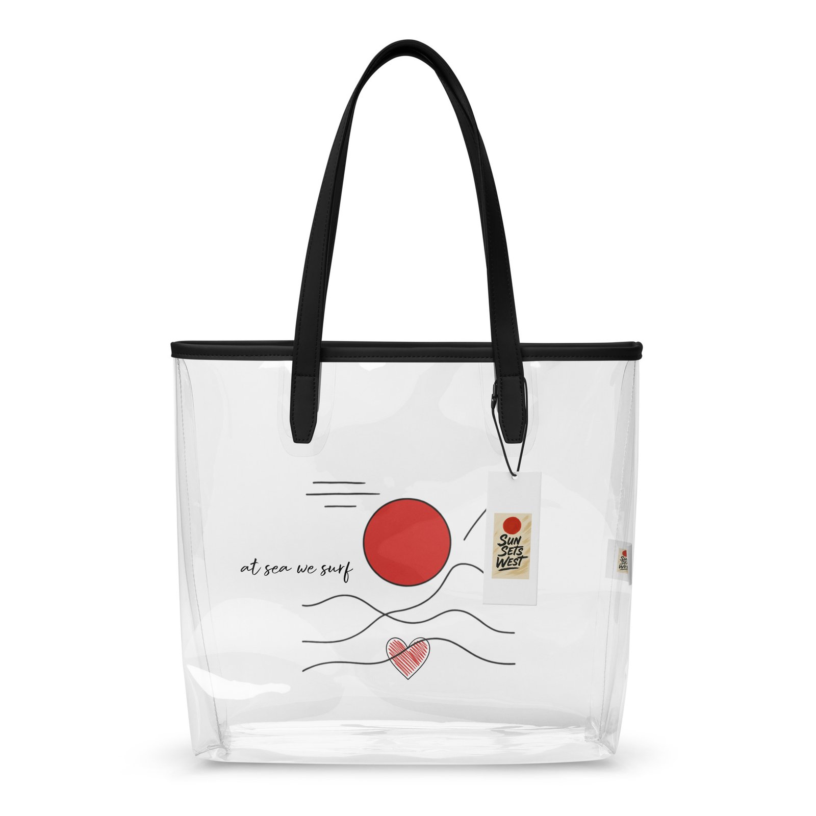 Clear, chic, and stadium-ready. This tote is made for everyday hauling—from concerts to beach days—with a sleek transparent look, sturdy build, and surf-inspired Sun Sets West artwork that keeps the beach vibes with you.